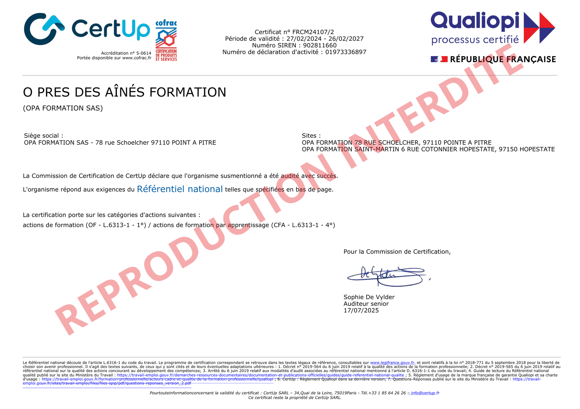 NOS CERTIFICATIONS